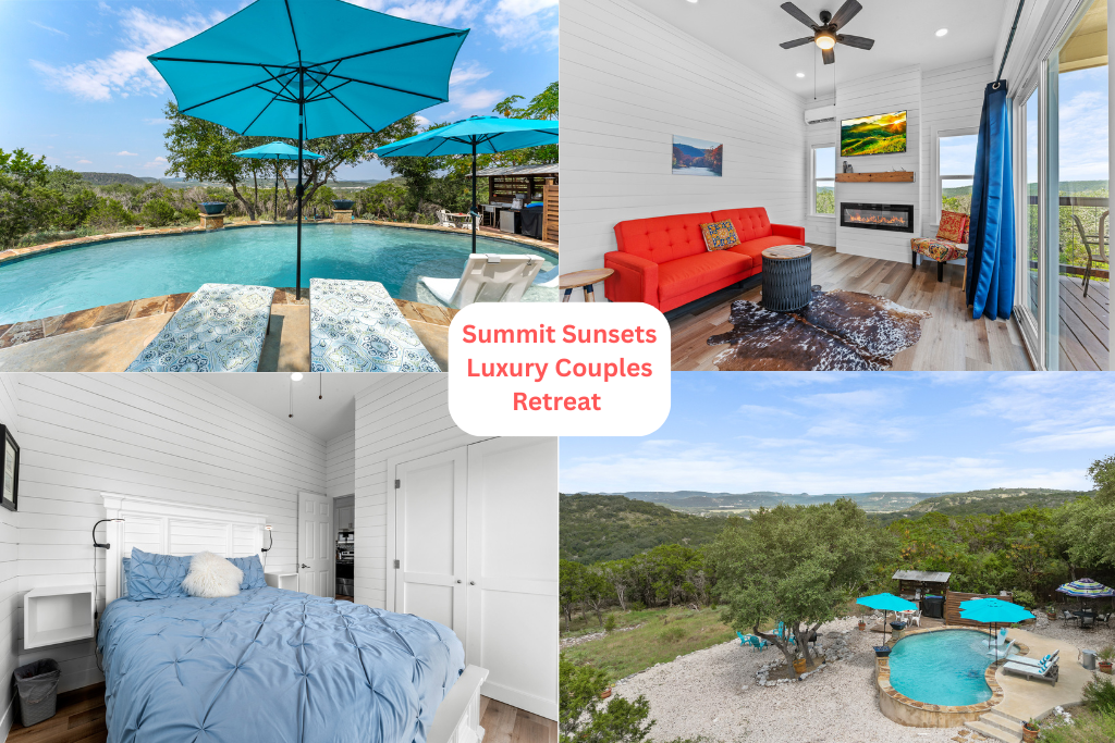 1 Bedroom • 1 Bathroom 1 Bath • Sleeps 1-4Summit Sunsets is a private Hill Country guesthouse designed for couples who love the outdoors without giving up comfort or style. Elevated above the landscape, this serene retreat offers sweeping sunset views, a heated year-round pool, and thoughtfully curated spaces that invite you to slow down and reconnect.
