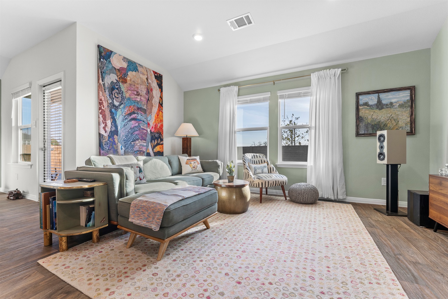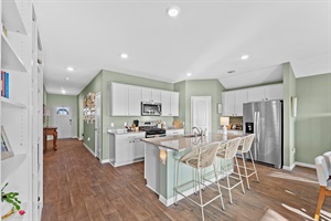 3 Bedrooms • 2 Bathrooms 2 Baths • Sleeps 3-6Welcome to Sweetwood & Cinnamon, a spacious single-story retreat in the heart of Kyle, Texas. Designed with warmth and comfort in mind, this newly built home features soothing sage greens, soft blues, and curated artwork that creates a calm, homely atmosphere from the moment you step through the vaulted entryway.