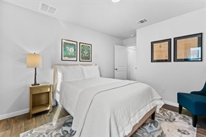 Master Suite – A peaceful retreat featuring a queen bed, a spacious ensuite bathroom, and an impressive walk-in closet.